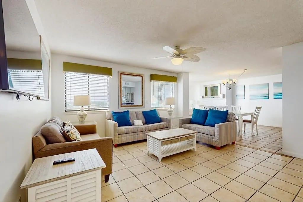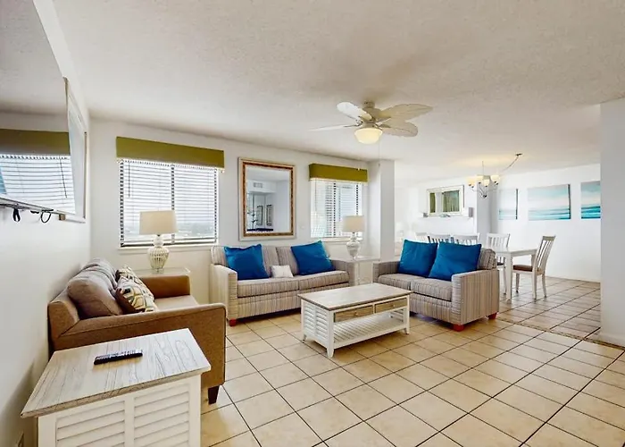 3-slaapkamer The Whaler 7B Appartement Gulf Shores is binnen 7 minuten wandelen van National Shrimp Festival gelegen en binnen 3 km van een top gezinsvriendelijke plek zoals de Alabama Gulf Coast Zoo. Dit 3-badkamer appartement biedt een terras waar gasten kunnen genieten van een kust uitzicht op de zee.